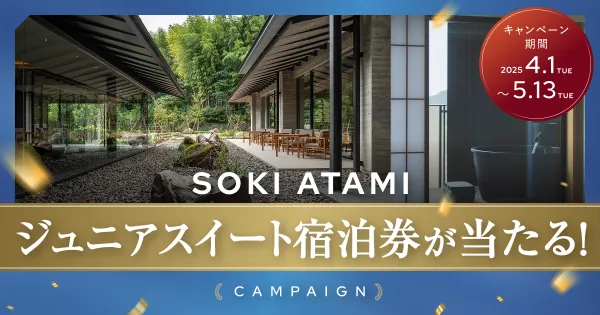 | 特典 | 「SOKI ATAMI ジュニアスイート」1泊2日の宿泊券 |
