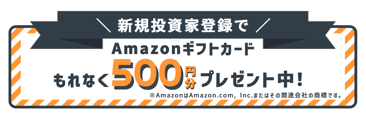 条件 | このサイト内のリンク経由で、2025年9月30日までに新規会員登録を行い、審査を経て2025年10月10日までに新規投資家登録を完了させる(書類不備などがあった場合、その補完も含む) |