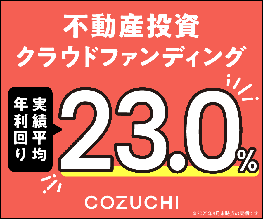 COZUCHI![]() | 公式サイト | キャンペーンなし | – | – | 高利回り案件が多く、運用期間も柔軟 |
