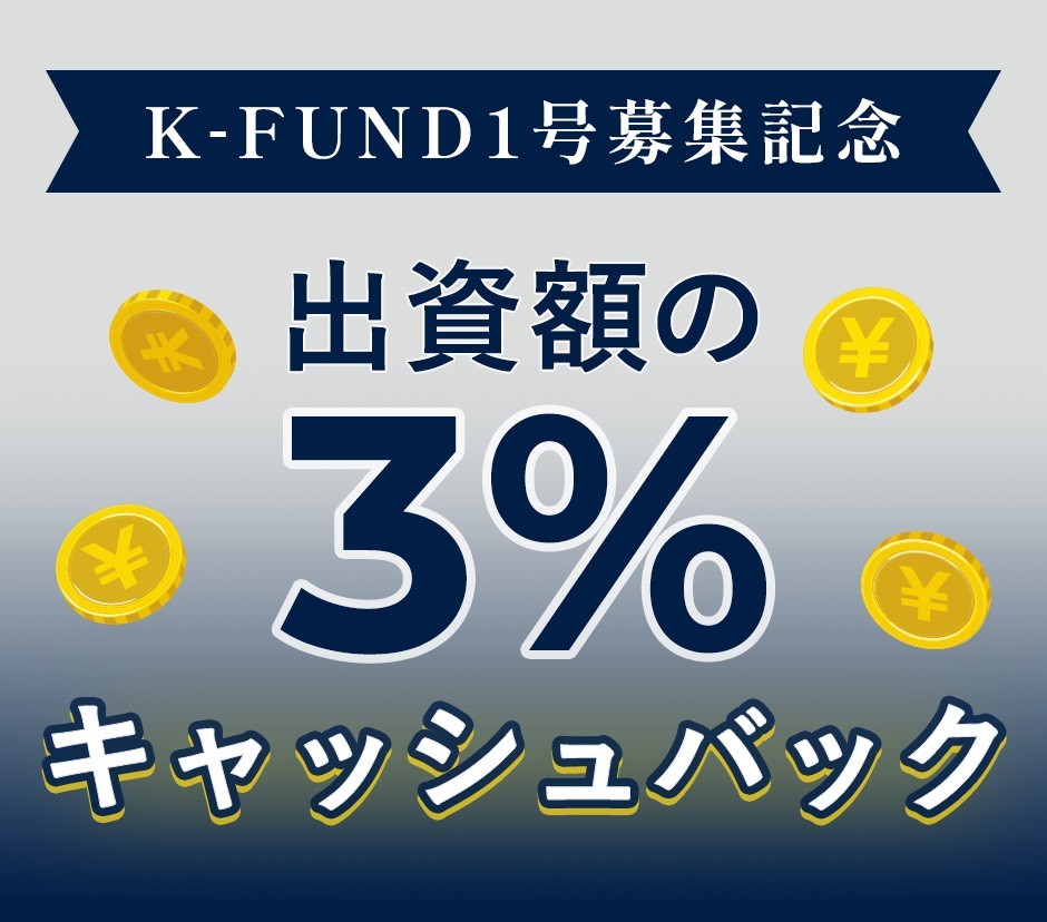 K-FUND![]() | 公式サイト | 出資額の3%の現金 | K-FUND1号ファンドに出資する | 2025年10月7日 12:00〜2025年10月14日 19:00(抽選式) | 2025年10月にサービス開始、初号は12%の高利回り |