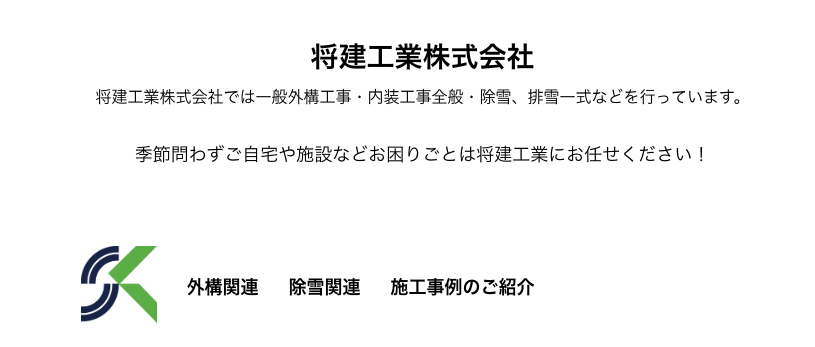 将建工業株式会社は、住宅の外構に関する施工を全般的に行っている業者です。