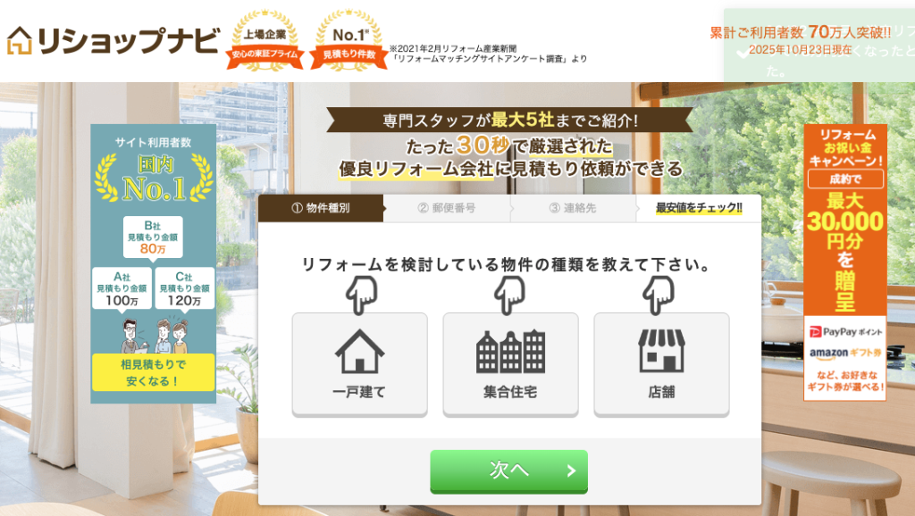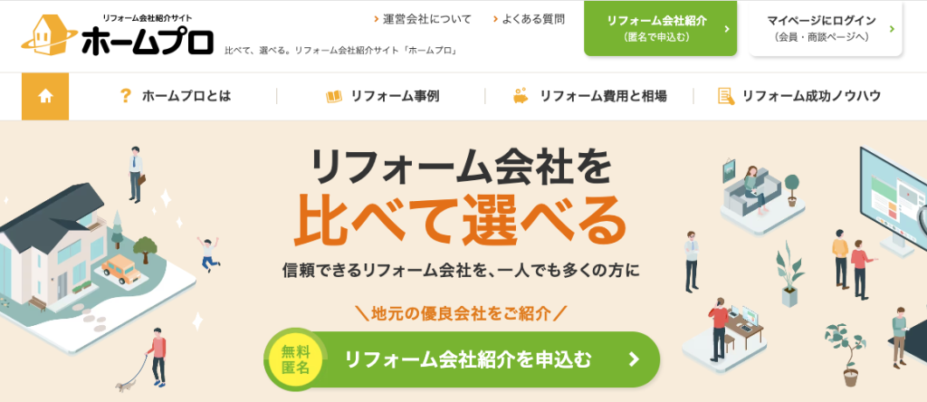 ホームプロは、住まいのリフォーム全般に関する見積もり比較サイトです。