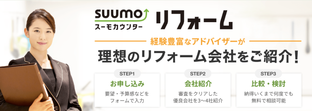 スーモリフォームは、求人情報サイトなどでおなじみのリクルートが運営するリフォームサービスです。