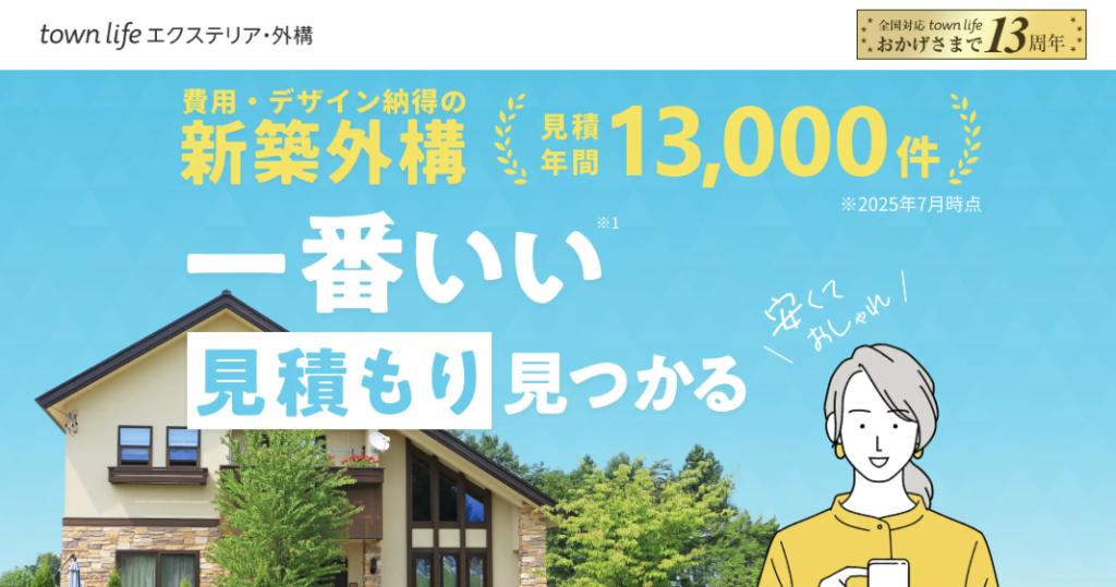 タウンライフエクステリアは、外構工事やエクステリアの一括見積もりサイトの中でも特に知名度の高いサービスです。