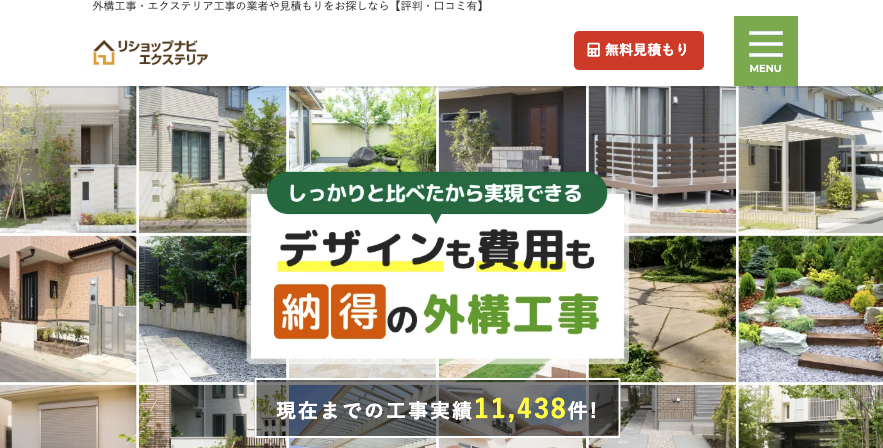 リショップナビエクステリアは、東証プライム上場の株式会社じげんが運営する外構・エクステリア専門一括比較サイトです。