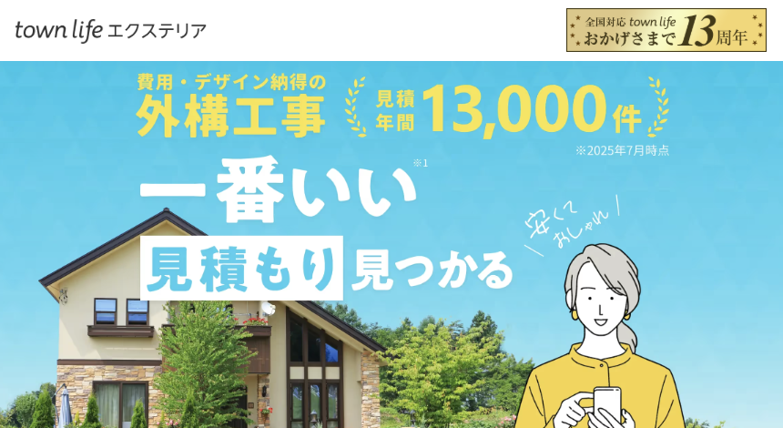 タウンライフエクステリアは、タウンライフ株式会社が運営する運営歴13年の外構・エクステリア専門比較サイトです。