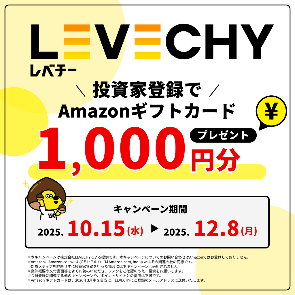 なお、現在募集中のLEVECHY25号ファンドもキャンペーンがありますので、興味のある方は詳細を確認してみてください。