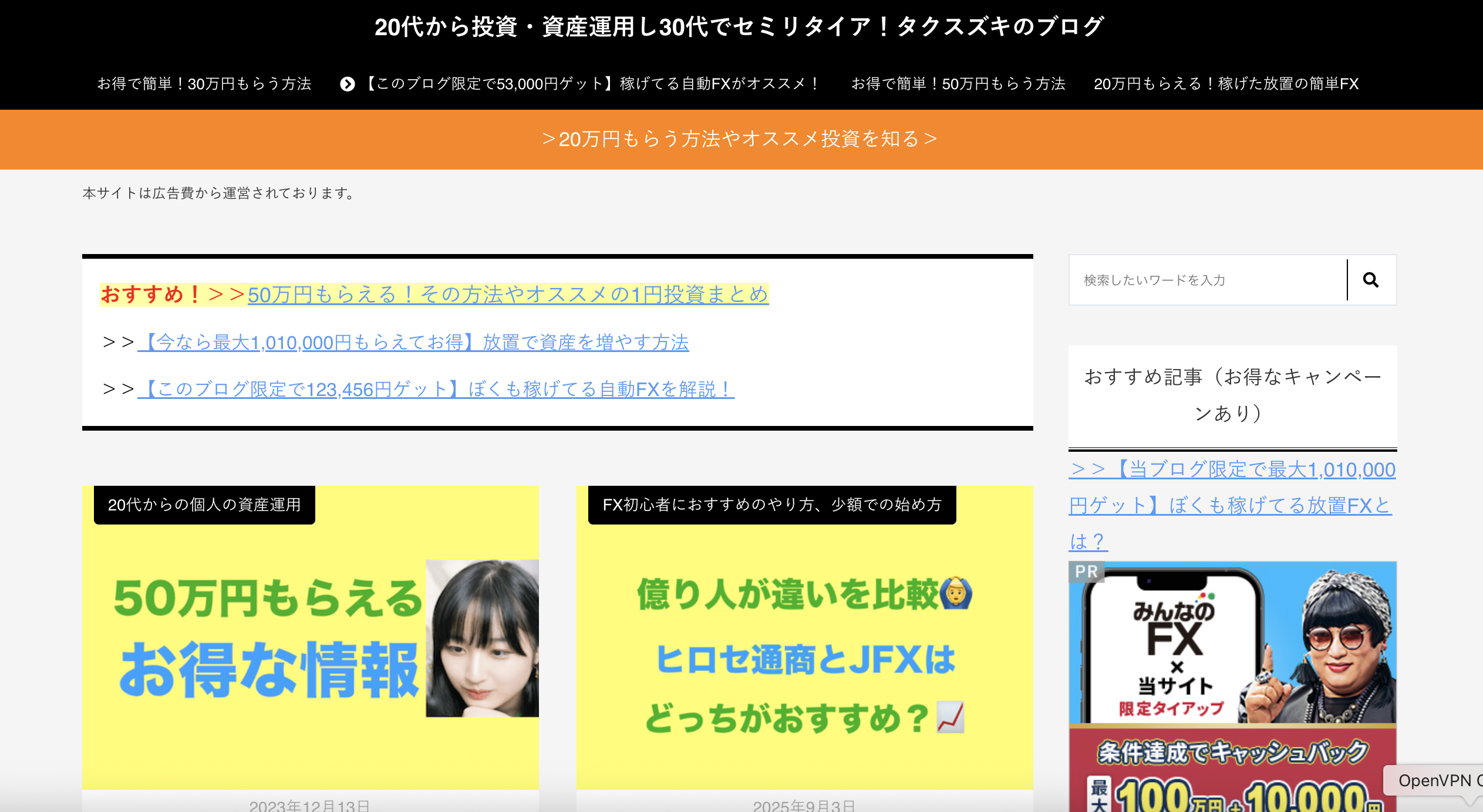 総資産は3億円以上、ソーシャルレンディング・不動産クラウドファンディングで約1億円ほど運用しているらしいですが、このブログでは新しいソーシャルレンディングサービスに登録してみた話や募集告知についての話など一般の投資家と変わらない内容です。