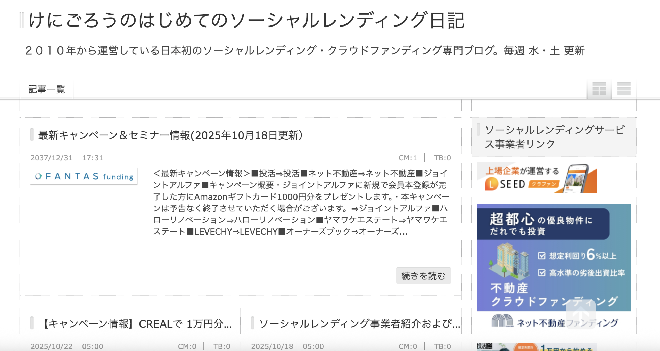 2010年からソーシャルレンディングサービスについて書いているブログです。
