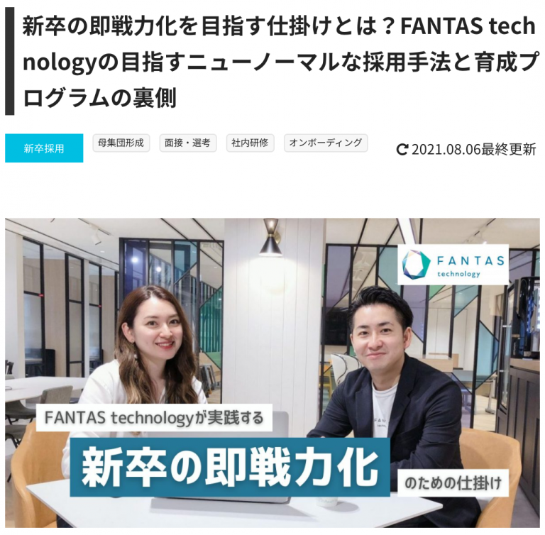 【掲載情報】HR note(2021年8月6日)『新卒の即戦力化を目指す仕掛けとは?FANTAS technologyの目指すニューノーマルな採用手法と育成プログラムの裏側』