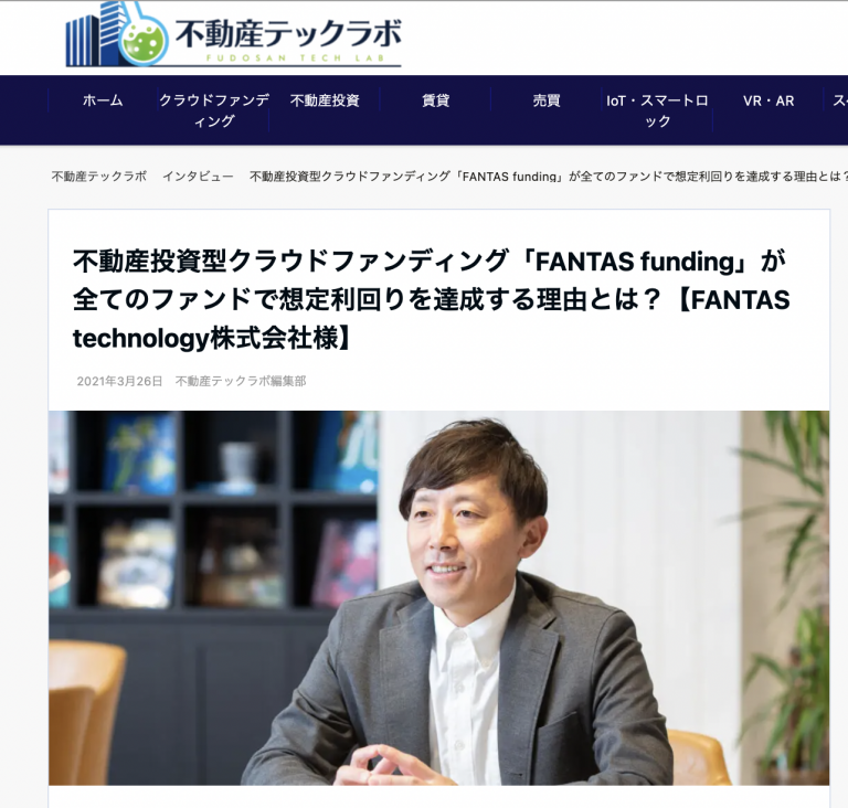 【掲載情報】不動産テックラボ(2021年3月26)『不動産投資型クラウドファンディング「FANTAS funding」が全てのファンドで想定利回りを達成する理由とは?』