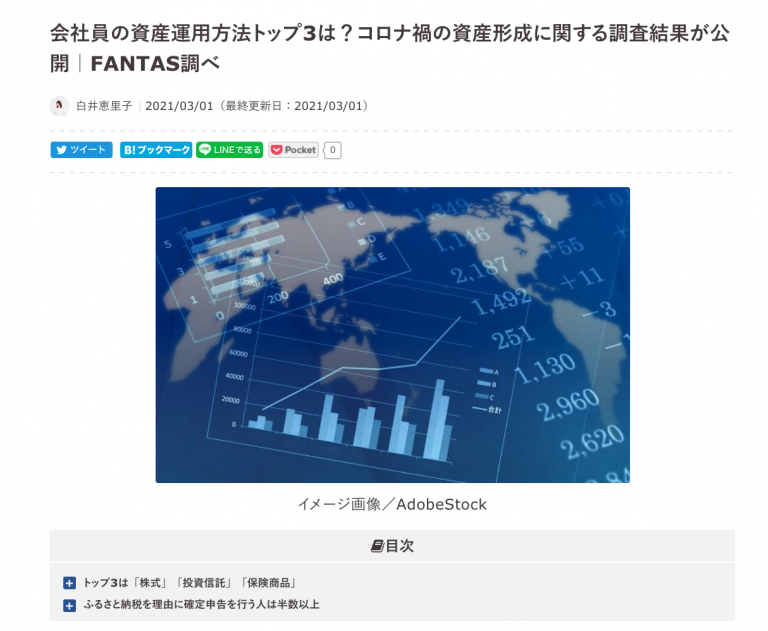 【掲載情報】U-NOTE(2021年3月1日)『会社員の資産運用方法トップ3は?コロナ禍の資産形成に関する調査結果が公開|FANTAS調べ』
