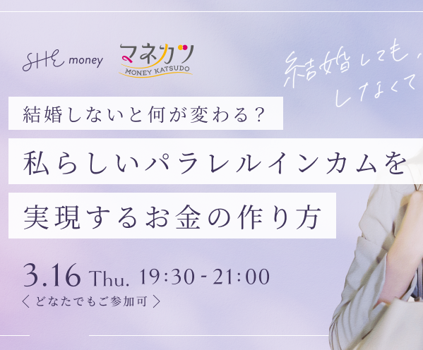 【Release】累計2.7万人参加の女性向けマネーセミナー「マネカツ」が「SHEmoney」と “パラレルインカム”の作り方を学べる無料オンラインイベントを開催 〜労働せず定期的な所得を得る“パラレルインカム”で、自分らしい生き方の実現へ〜